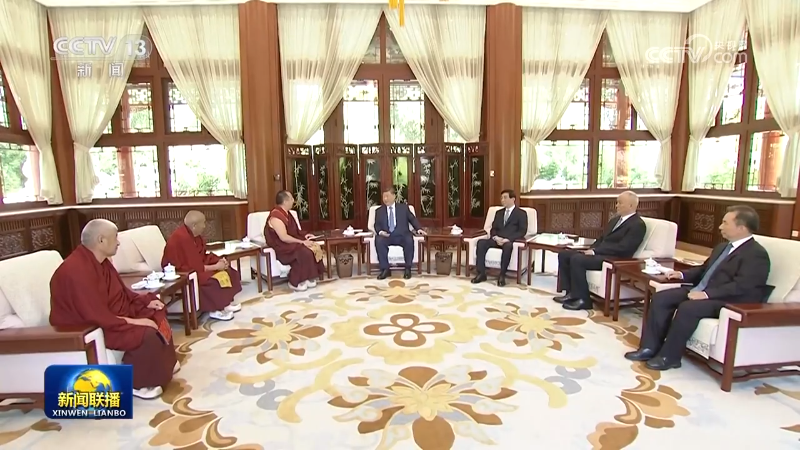 班禪向習(xí)近平敬獻哈達,介紹了他近年來的學(xué)習(xí)工作情況。習(xí)近平對他在各方面取得的進步表示祝賀。