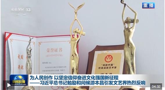 文藝是時代前進(jìn)的號角,最能代表一個時代的風(fēng)貌,最能引領(lǐng)一個時代的風(fēng)氣。習(xí)近平總書記的勉勵,鼓舞著廣大文藝工作者堅定文化自信、堅守藝術(shù)理想、勇攀文藝高峰。大家表示,新時代新征程上要堅持扎根人民、扎根生活、崇德尚藝、守正創(chuàng)新,為推動社會主義文化大發(fā)展大繁榮、建設(shè)文化強國貢獻(xiàn)力量。