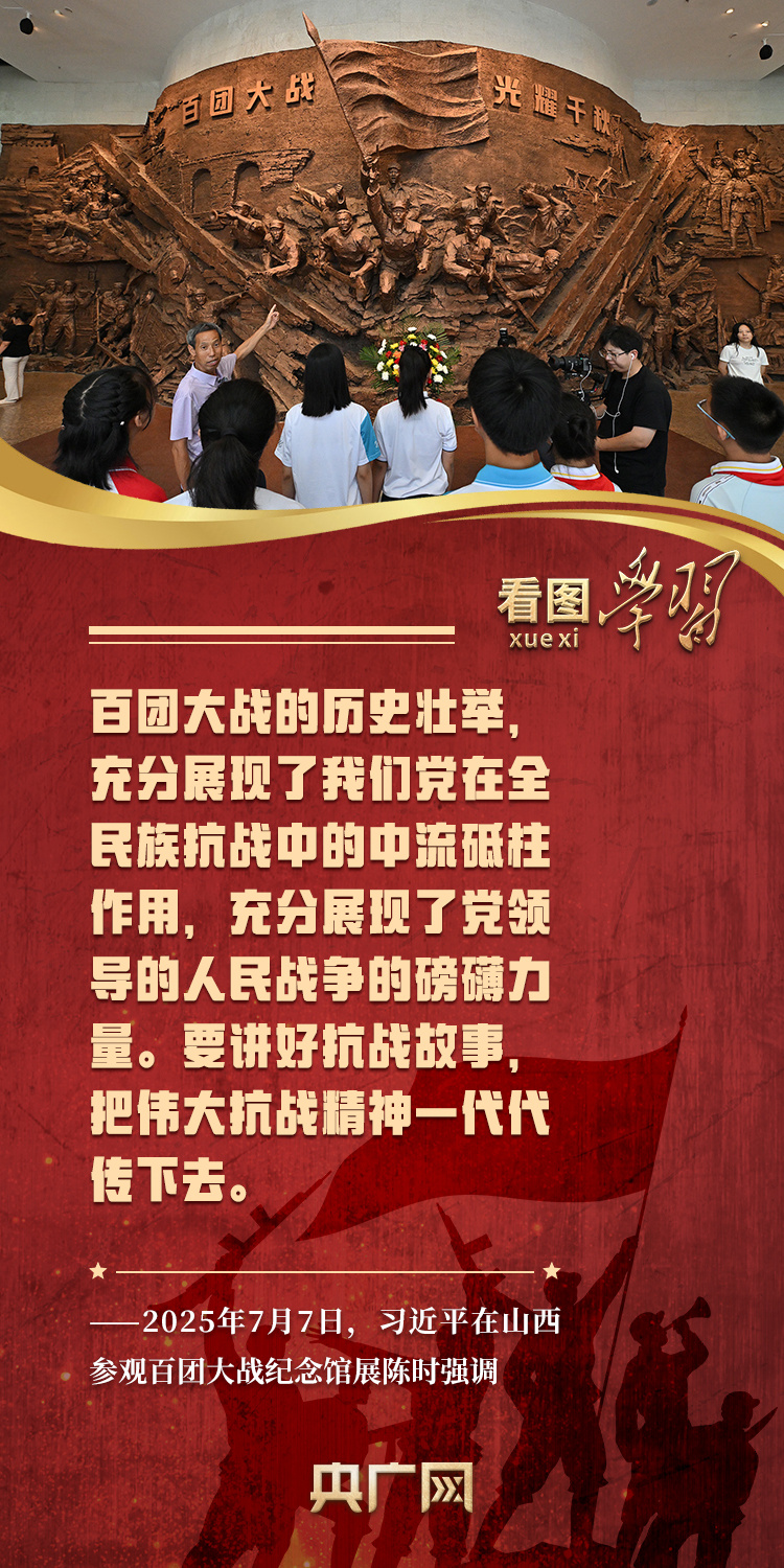 “要講好抗戰(zhàn)故事,把偉大抗戰(zhàn)精神一代代傳下去?!秉h的十八大以來,習(xí)近平總書記在地方考察調(diào)研時,多次到具有重大歷史意義的革命圣地、紅色舊址、歷史紀念場所等緬懷革命先烈,重溫崢嶸歲月,深刻闡釋歷史啟迪。今年是中國人民抗日戰(zhàn)爭暨世界反法西斯戰(zhàn)爭勝利80周年,《看圖學(xué)習(xí)》邀您一起跟隨總書記的腳步,共同緬懷抗戰(zhàn)先烈的豐功偉績,繼承和弘揚偉大抗戰(zhàn)精神,為強國建設(shè)、民族復(fù)興作出我們的新貢獻。