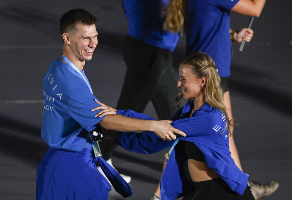 2025年8月7日,愛沙尼亞體育代表團(tuán)成員在第12屆世界運動會開幕式上起舞。