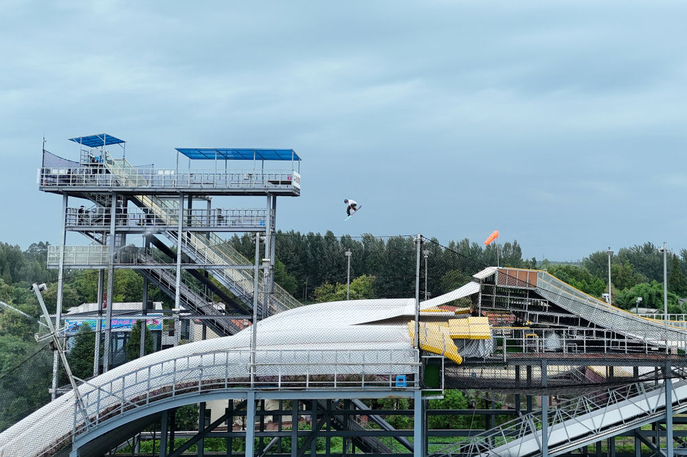 2024年8月9日,一名運動員在四川成都尖鋒旱雪四季滑雪場訓(xùn)練。