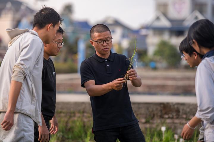 今年37歲的黃光福是云南大學(xué)農(nóng)學(xué)院的一名青年教師,同時(shí)也是云南大學(xué)在云南省勐??h勐遮鎮(zhèn)曼恩村成立的多年生稻科技小院的負(fù)責(zé)人。多年來,他帶領(lǐng)學(xué)生扎根田間,進(jìn)行技術(shù)攻關(guān)。團(tuán)隊(duì)利用長雄野生稻特有的地下莖無性繁殖能力,成功培育出“云大25”“云大107”等新品種,突破性地實(shí)現(xiàn)水稻“一次栽種、連續(xù)收割”,讓“割韭菜般收稻子”的農(nóng)業(yè)成果從實(shí)驗(yàn)室走向田間地頭。這是2025年2月27日,青年教師黃光福(中)在試驗(yàn)田間給學(xué)生授課。