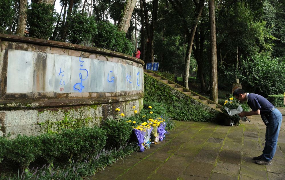 2012年8月15日,云南騰沖各地群眾前往“國(guó)殤墓園”和“騰沖滇西抗戰(zhàn)博物館”等愛國(guó)主義教育基地,祭奠抗戰(zhàn)先烈。這是一位市民在“國(guó)殤墓園”緬懷英烈。