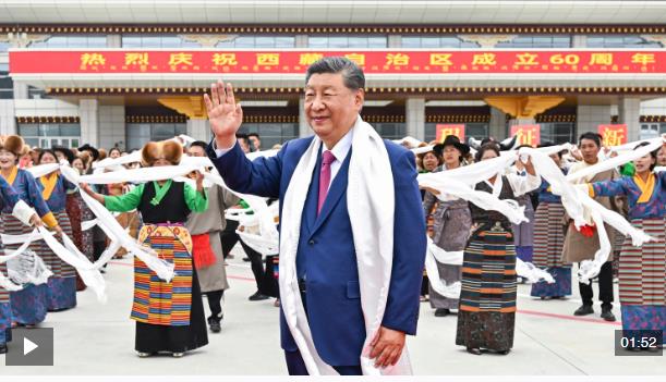 中共中央總書記、國家主席、中央軍委主席習(xí)近平率中央代表團20日中午乘專機抵達拉薩,出席西藏自治區(qū)成立60周年慶?;顒印A?xí)近平等在機場和拉薩市區(qū)受到西藏各族群眾的熱烈歡迎。中共中央政治局常委、全國政協(xié)主席、中央代表團團長王滬寧,中共中央政治局常委、中央辦公廳主任蔡奇等同機抵達。