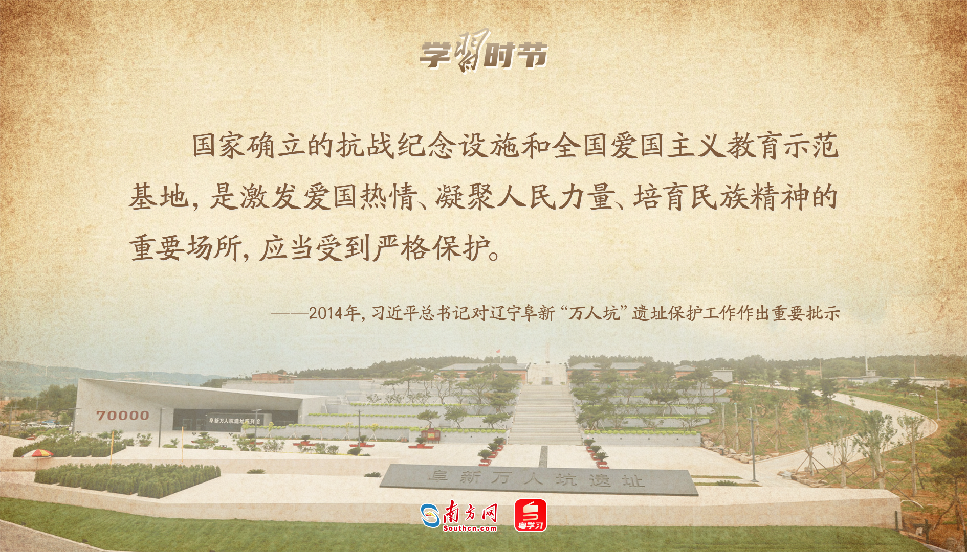 “國家確立的抗戰(zhàn)紀(jì)念設(shè)施和全國愛國主義教育示范基地,是激發(fā)愛國熱情、凝聚人民力量、培育民族精神的重要場所,應(yīng)當(dāng)受到嚴(yán)格保護(hù)?!?/p>