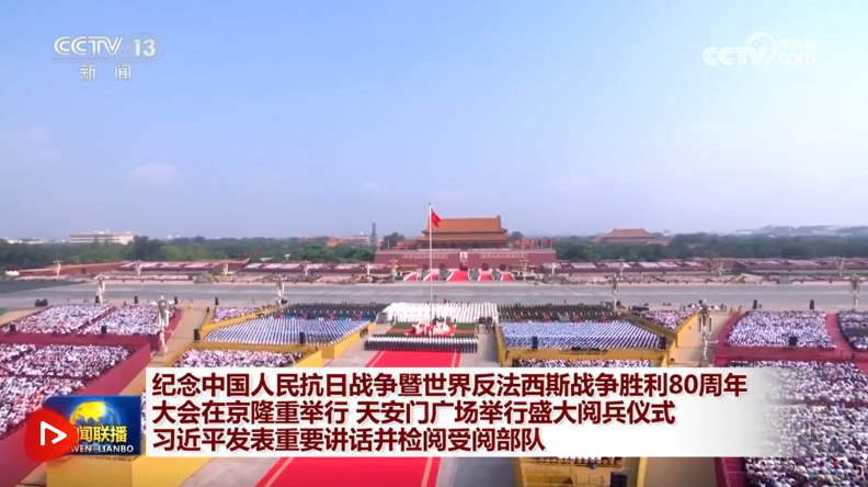 銘記偉大歷史勝利,凝聚正義和平力量。9月3日上午,紀(jì)念中國人民抗日戰(zhàn)爭暨世界反法西斯戰(zhàn)爭勝利80周年大會(huì)在北京天安門廣場隆重舉行,以盛大閱兵儀式,同世界人民一道紀(jì)念這個(gè)偉大的日子,共同開創(chuàng)更加光明的未來。中共中央總書記、國家主席、中央軍委主席習(xí)近平發(fā)表重要講話并檢閱受閱部隊(duì)。