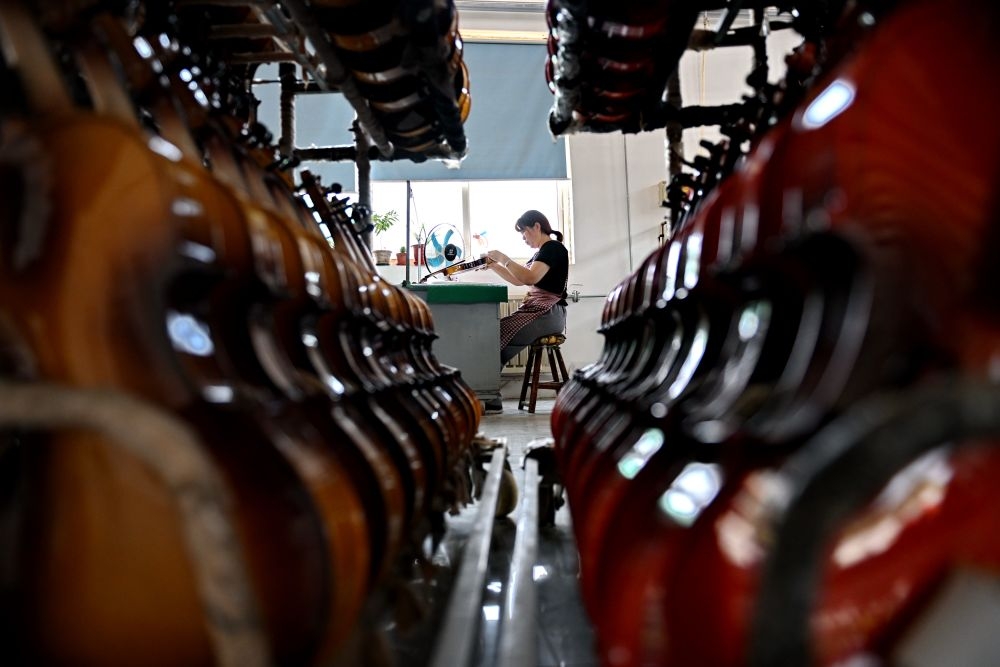2025年5月28日,河北省武強(qiáng)縣一家樂器生產(chǎn)企業(yè)的工人在制作尤克里里。武強(qiáng)縣樂器產(chǎn)業(yè)歷經(jīng)30余年的發(fā)展,形成擁有超過150家企業(yè)、從業(yè)人員萬余人的產(chǎn)業(yè)集群,產(chǎn)品覆蓋100多個(gè)品種、400多種規(guī)格。近年來,武強(qiáng)縣依托樂器文化產(chǎn)業(yè)資源,打造集樂器加工、樂器體驗(yàn)、音樂展演和休閑度假等業(yè)態(tài)為一體的周窩音樂小鎮(zhèn),同時(shí)創(chuàng)新“樂器+”鄉(xiāng)村振興模式,持續(xù)增強(qiáng)樂器產(chǎn)業(yè)的富民強(qiáng)縣作用。2024年武強(qiáng)縣樂器產(chǎn)業(yè)實(shí)現(xiàn)營收23.8億元,旅游收入超10億元。