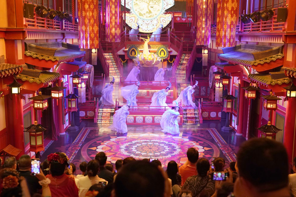 2024年5月19日,游客在西安長安十二時(shí)辰景區(qū)觀看表演《霓裳羽衣舞》。“長安十二時(shí)辰”主題街區(qū)將唐朝文化與現(xiàn)代旅游相結(jié)合,讓游客仿佛置身于千年前的長安城。近年來,西安積極推進(jìn)產(chǎn)業(yè)升級和文旅融合,以中華優(yōu)秀傳統(tǒng)文化創(chuàng)新創(chuàng)造活力助推經(jīng)濟(jì)社會(huì)高質(zhì)量發(fā)展,如大唐不夜城一樣火爆“出圈”的文旅項(xiàng)目層出不窮。