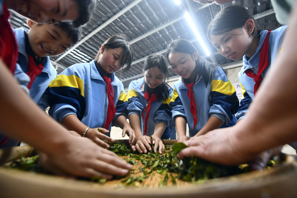 2024年12月3日,學(xué)生們在廣西梧州市蒼梧縣六堡鎮(zhèn)塘平小學(xué)學(xué)習(xí)制作六堡茶。廣西六堡茶已有1500多年的歷史,其制作工藝被列入第四批國家級非物質(zhì)文化遺產(chǎn)代表性項(xiàng)目名錄。近年來,廣西圍繞打造千億元茶產(chǎn)業(yè)發(fā)展目標(biāo),深入實(shí)施綠色高效茶園建設(shè)、品牌提升和營銷體系建設(shè)、產(chǎn)業(yè)融合和茶文化提升等多項(xiàng)工程,形成了以六堡茶為引擎,早春茶等特色優(yōu)勢茶協(xié)同發(fā)展的產(chǎn)業(yè)格局,茶產(chǎn)業(yè)煥發(fā)勃勃生機(jī)。六堡茶正沿21世紀(jì)海上絲綢之路運(yùn)達(dá)八方,香飄海內(nèi)外。2024年,廣西六堡茶產(chǎn)量達(dá)到4.3萬噸,綜合產(chǎn)值超300億元。