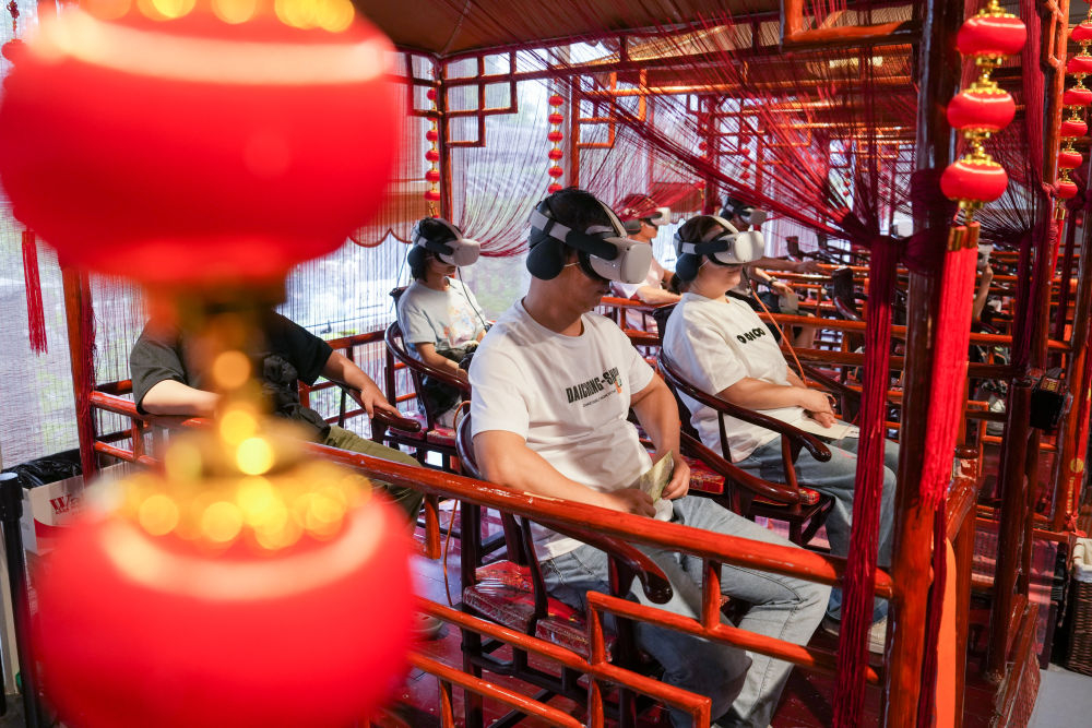 2025年5月18日,游客在蘇州拙政園體驗(yàn)VR漫游。當(dāng)?shù)乩脭?shù)字化手段,創(chuàng)造“數(shù)字云游”VR場景,打造“云游拙政園”“獅林園宇宙”“留園虛擬元宇宙”等項(xiàng)目,營造真實(shí)可感的虛擬空間,讓觀眾沉浸式感受蘇州園林的獨(dú)特魅力。近年來,蘇州不斷推進(jìn)“數(shù)字園林”建設(shè),在園林整體數(shù)字建模、園林要素?cái)?shù)據(jù)庫建設(shè)、園林“元宇宙”應(yīng)用場景開發(fā)等方面進(jìn)行探索,加快推動(dòng)“數(shù)字園林”成果全民共享。