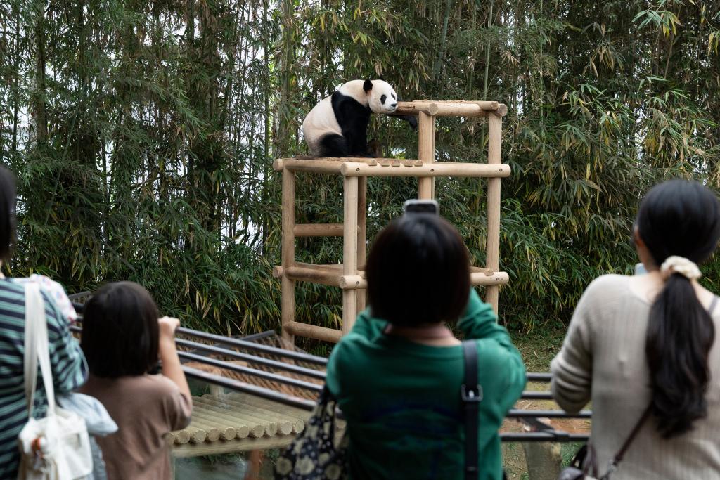 9月30日,游客在韓國龍仁的愛寶樂園觀看大熊貓樂寶。新華社發(fā)(全休相攝)