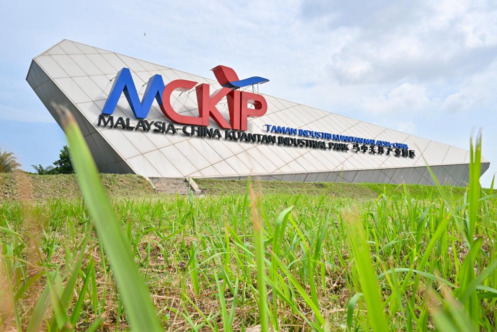 這是2024年6月13日在馬來西亞彭亨州拍攝的馬中關(guān)丹產(chǎn)業(yè)園象征基石。新華社記者 程一恒 攝