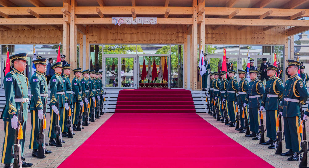 當(dāng)?shù)貢r(shí)間11月1日下午,國(guó)家主席習(xí)近平出席韓國(guó)總統(tǒng)李在明舉行的歡迎儀式。
