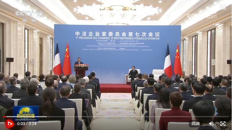 12月4日中午,國(guó)家主席習(xí)近平在北京同法國(guó)總統(tǒng)馬克龍共同出席中法企業(yè)家委員會(huì)第七次會(huì)議閉幕式并致辭。