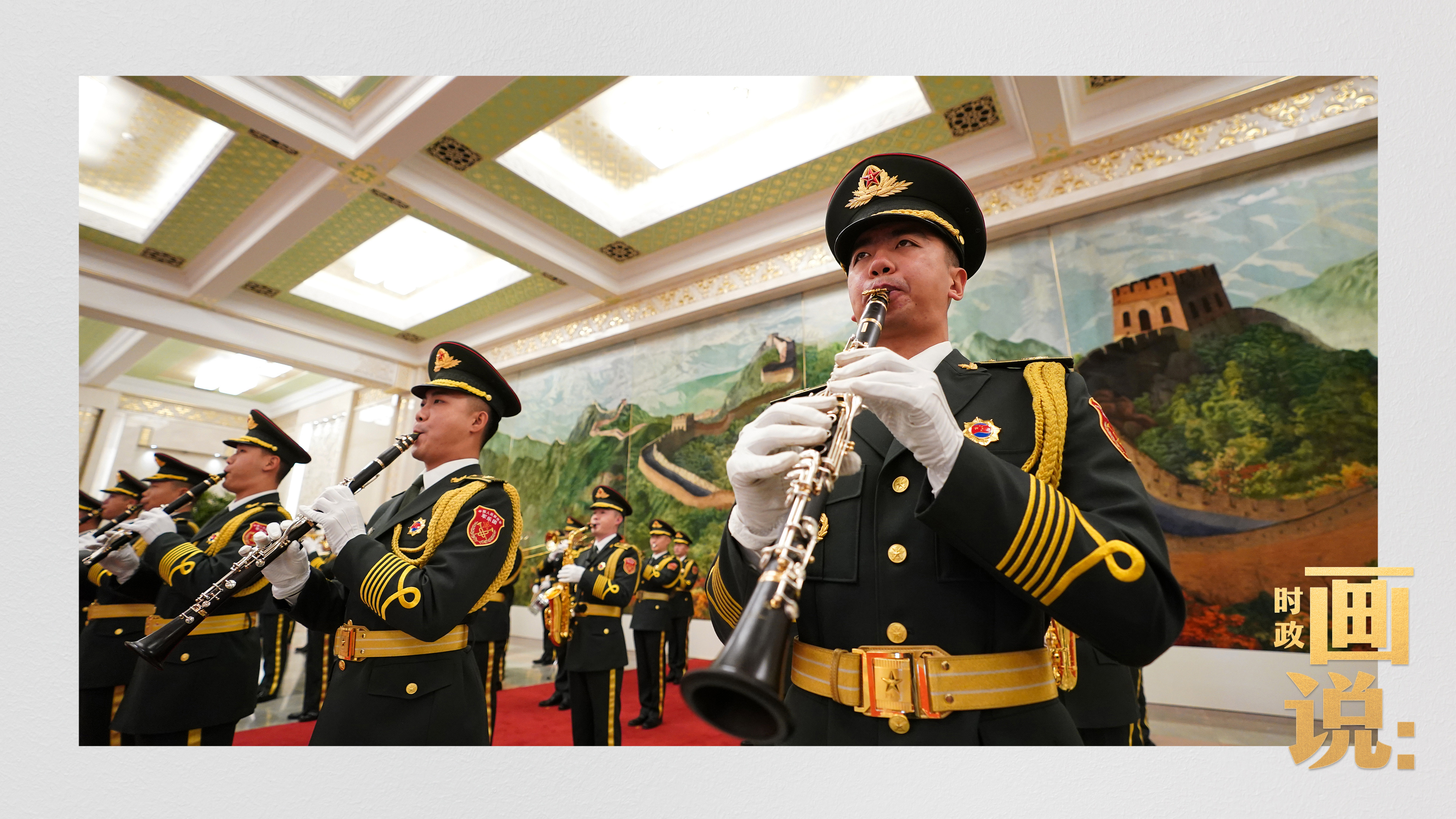 △習(xí)近平和夫人彭麗媛在人民大會堂北大廳為馬克龍和夫人布麗吉特舉行歡迎儀式
