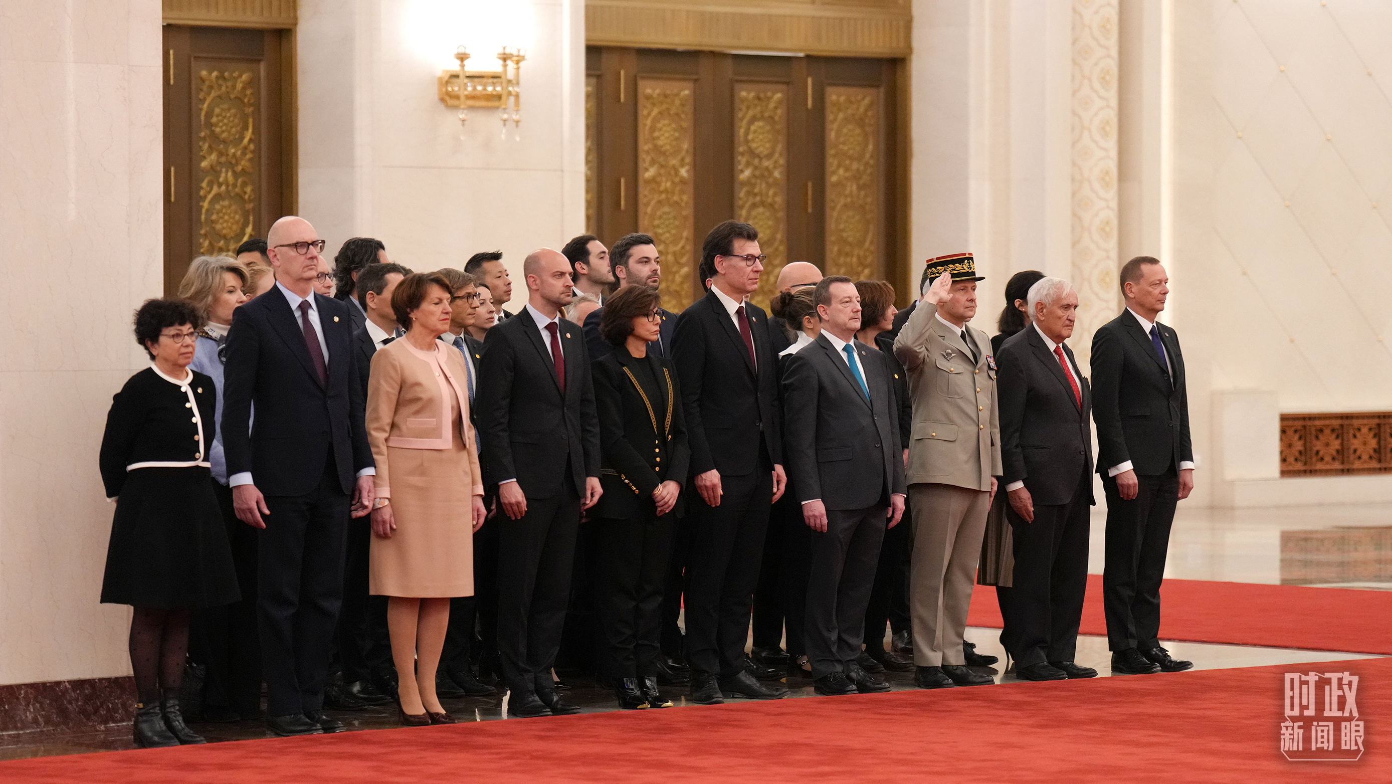 歡迎儀式上的法方代表團。(總臺記者李晉拍攝)