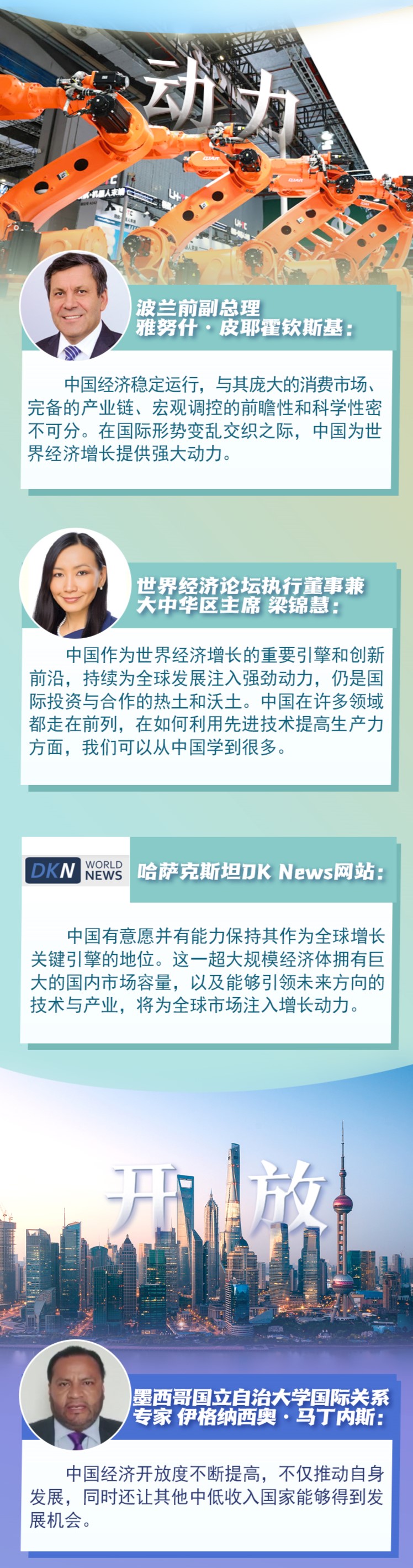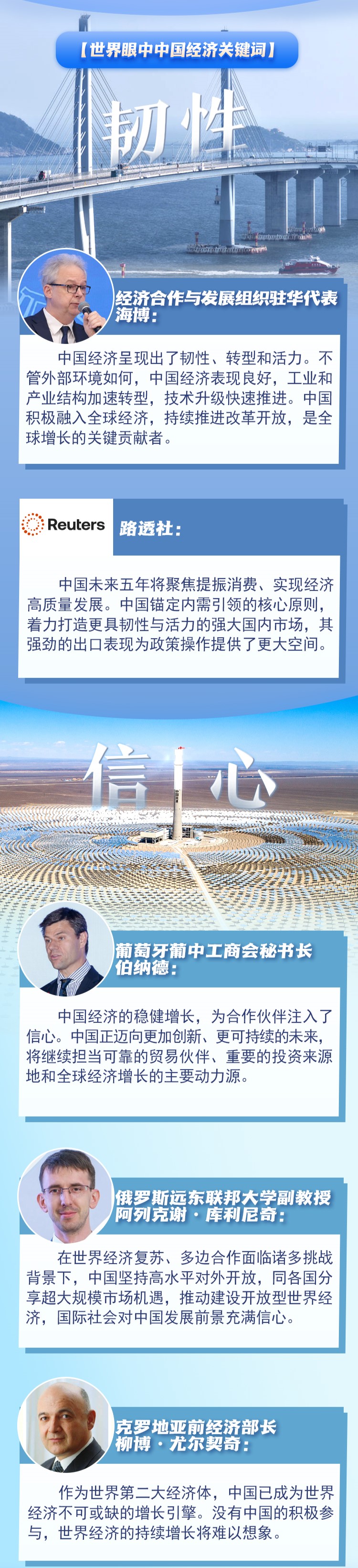 近期,多家國(guó)際機(jī)構(gòu)上調(diào)中國(guó)經(jīng)濟(jì)增長(zhǎng)預(yù)期,多國(guó)人士及媒體認(rèn)為,中國(guó)是世界經(jīng)濟(jì)增長(zhǎng)的重要引擎和創(chuàng)新前沿。韌性、信心、動(dòng)力、開放,成為世界眼中的中國(guó)經(jīng)濟(jì)關(guān)鍵詞。