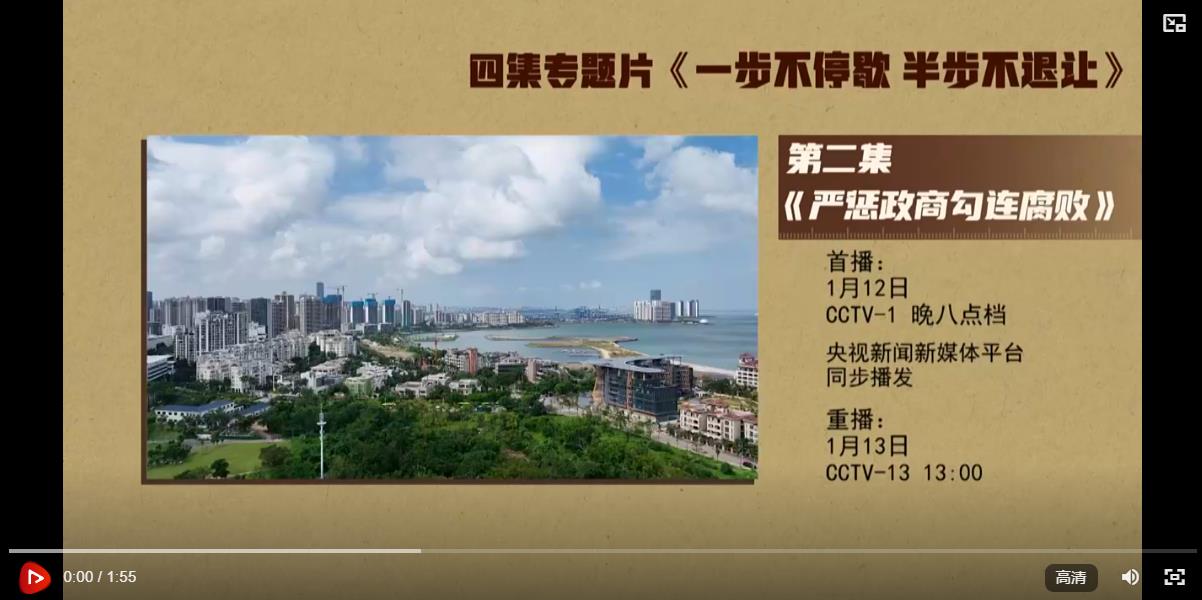 反對(duì)腐敗、建設(shè)廉潔政治,是我們黨一貫堅(jiān)持的鮮明政治立場(chǎng),是黨自我革命必須長(zhǎng)期抓好的重大政治任務(wù)。要把嚴(yán)懲政商勾連腐敗作為攻堅(jiān)戰(zhàn)重中之重,堅(jiān)決打擊以權(quán)力為依托的資本逐利行為,堅(jiān)決防止各種利益集團(tuán)、權(quán)勢(shì)團(tuán)體向政治領(lǐng)域滲透,不斷凈化政治生態(tài),推動(dòng)構(gòu)建親清統(tǒng)一的新型政商關(guān)系,促進(jìn)經(jīng)濟(jì)社會(huì)高質(zhì)量發(fā)展。電視專題片《一步不停歇半步不退讓》第二集《嚴(yán)懲政商勾連腐敗》,講述紀(jì)檢監(jiān)察機(jī)關(guān)聚焦政治問題和經(jīng)濟(jì)問題交織的腐敗案件,嚴(yán)懲以商養(yǎng)官、以官護(hù)商、官商一體等問題,堅(jiān)決破除政商勾連“利益共同體”??偱_(tái)央視綜合頻道1月12日晚8點(diǎn)檔播出,央視新聞新媒體平臺(tái)同步播發(fā)。