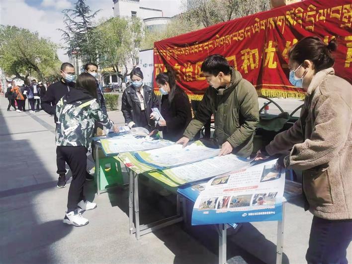 拉薩:掛橫幅 發(fā)資料 引導(dǎo)市民健康生活