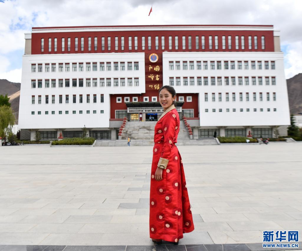 拉增在西藏大學(xué)圖書館前留影(5月7日攝)。新華社記者 晉美多吉 攝