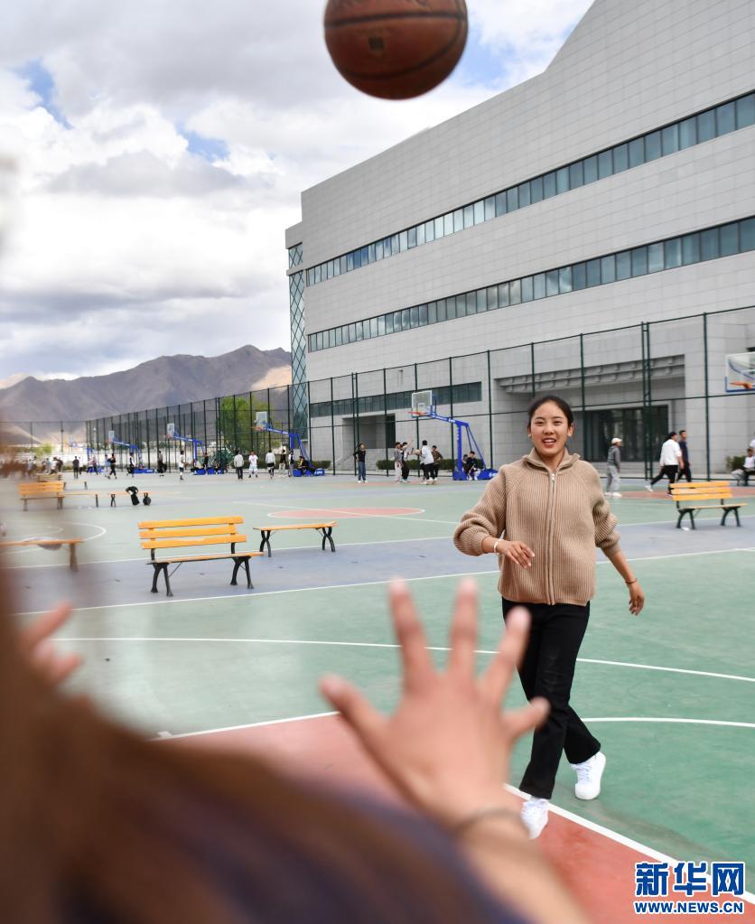 拉增在西藏大學(xué)操場打籃球(5月7日攝)。新華社記者 晉美多吉 攝