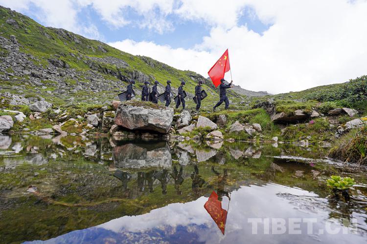圖為西藏亞東出入境邊防檢查站民警在海拔4300余米的乃堆拉山口巡邏