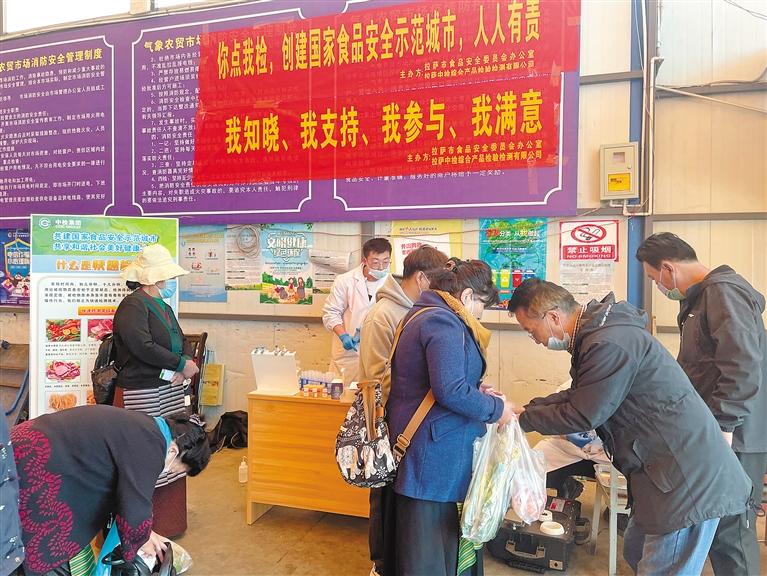 為進(jìn)一步擴(kuò)大拉薩創(chuàng)建國(guó)家食品安全示范城市的知曉率和參與度,近日,拉薩市市場(chǎng)監(jiān)管局組織兩家食品快檢站在八一農(nóng)貿(mào)市場(chǎng)、氣象局農(nóng)貿(mào)市場(chǎng)開(kāi)展“你點(diǎn)我檢”活動(dòng),免費(fèi)為市民提供蔬菜水果類、畜肉蛋類和水產(chǎn)品、肉制品、米面制品、豆制品等5大類農(nóng)殘獸殘、食品添加劑超標(biāo)情況快速檢測(cè)快檢服務(wù),檢測(cè)食用農(nóng)產(chǎn)品50批次,檢測(cè)結(jié)果反饋率100%。參與市民達(dá)300人次,發(fā)放宣傳冊(cè)(品)400余份,讓廣大市民就近就便實(shí)現(xiàn)食品安全檢驗(yàn)。
