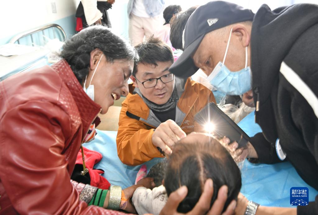 7月30日,中國醫(yī)學科學院整形外科醫(yī)院醫(yī)生王克明(中)在阿里地區(qū)人民醫(yī)院看望一名術(shù)后兒童。新華社記者 張汝鋒 攝