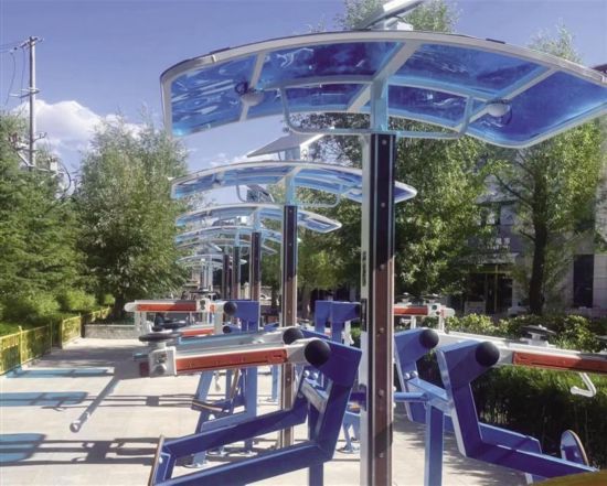 為什么要說它們智能呢?原來,如雙位漫步機(jī)、雙位蹬力器、雙位背部訓(xùn)練器、雙位健身車器材,均采用太陽能供電系統(tǒng),為LED燈提供夜間照明,以及為運(yùn)動數(shù)據(jù)采集、處理提供能源,加遮陽棚并與安裝環(huán)境相融合。同時,這些器材具備數(shù)據(jù)統(tǒng)計和數(shù)據(jù)處理功能,讓健身者在運(yùn)動的同時實(shí)時了解自己的健身數(shù)據(jù),更好地規(guī)劃健身運(yùn)動的方式,讓力量訓(xùn)練更科學(xué)、有效。此外,器材還可以通過顯示屏、微信小程序或手機(jī)APP進(jìn)行在線視頻訓(xùn)練指導(dǎo)。