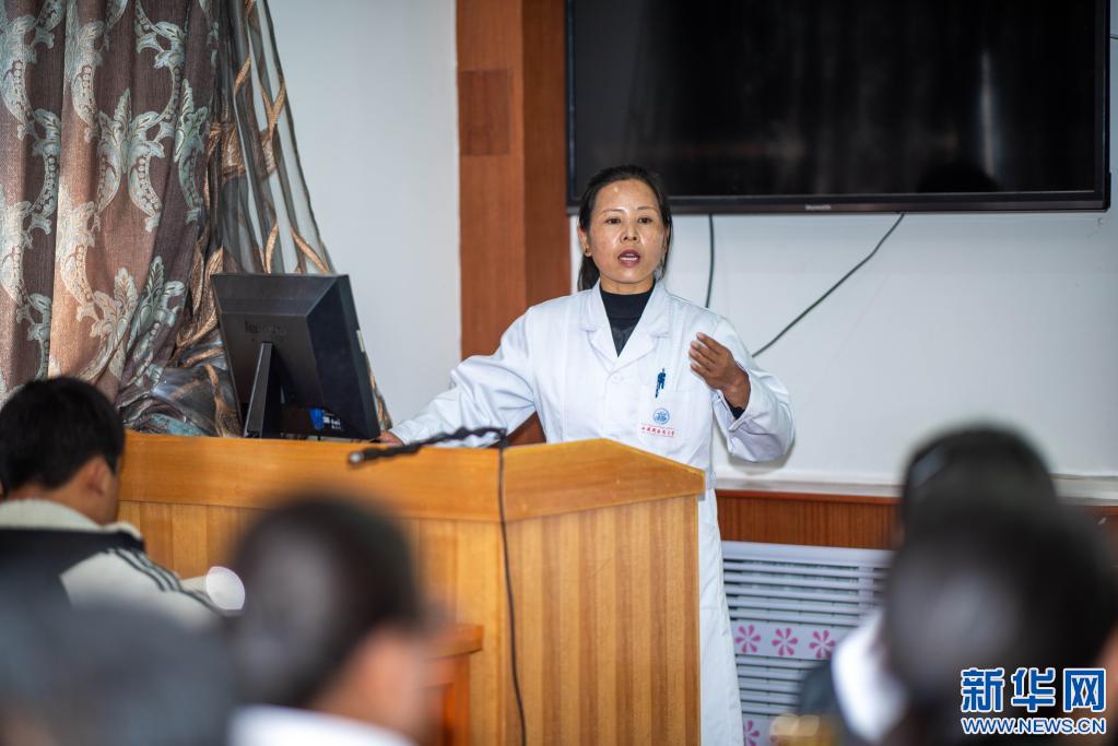 西藏藏醫(yī)藥大學(xué)色珍老師在給19級本科生教授方劑學(xué)課程(3月23日攝)。新華社記者 旦增尼瑪曲珠 攝