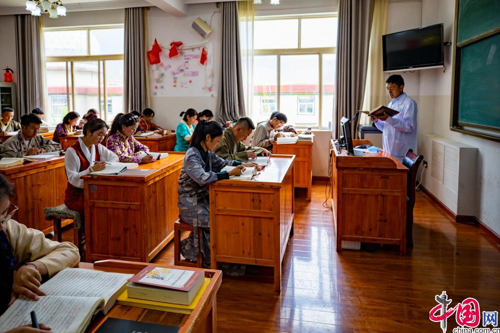 西藏藏醫(yī)藥大學建校之初,僅有1個藏醫(yī)學專業(yè)。隨后2001年設置藏藥專業(yè),2018年設置護理學和市場營銷學專業(yè),2020年設置中(藏)西臨床醫(yī)學、中(藏)藥制藥專業(yè)。2019年藏醫(yī)學、藏藥學專業(yè)入選省級一流本科專業(yè)。2021年藏醫(yī)學入選國家級一流本科專業(yè)建設點。至此,學校形成了以藏醫(yī)學國家級一流本科專業(yè)建設點為引領,以藏醫(yī)學、藏藥學2個省級一流專業(yè)建設點為支撐,以藏醫(yī)學、藏藥學、護理學、市場營銷、中(藏)西臨床醫(yī)學、中(藏)藥制藥6個本科專業(yè)為基礎的發(fā)展新格局。圖為西藏藏醫(yī)藥大學學生正在上課。中國網記者 鄭亮攝
