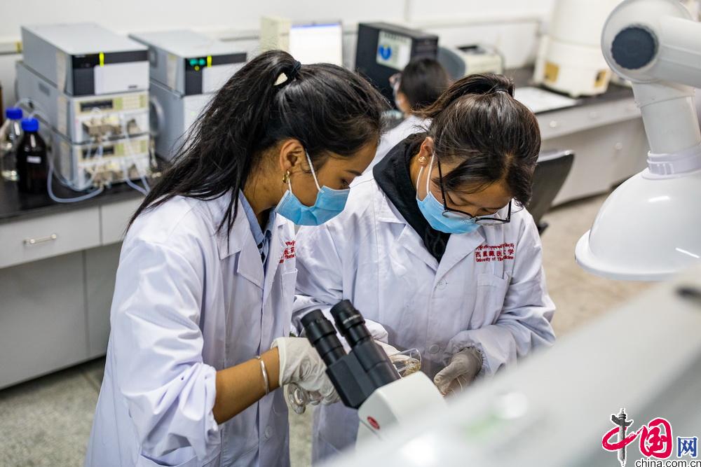 西藏藏醫(yī)藥大學目前擁有校內實訓室24個、附屬醫(yī)院1家,校外藏藥采認藥實踐實訓基地2個、非直屬附屬醫(yī)院2家、教學醫(yī)院7家、實習醫(yī)院11家、教學藥廠2家、實習藥廠1家,同時還擁有國家中醫(yī)藥管理局藏醫(yī)藥繼續(xù)教育培訓基地、中醫(yī)藥優(yōu)勢特色教育(藏藥)培訓基地和中央與地方共建藏醫(yī)特色療法實踐基地等重要教學基地。圖為學校學生在實驗室中進行藥物試驗。中國網記者 鄭亮攝