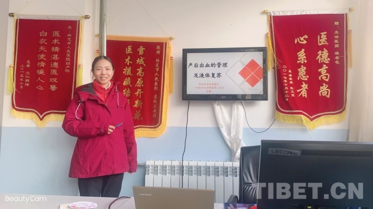 圖為萬靜給林芝市人民醫(yī)院婦產(chǎn)科同事進行培訓