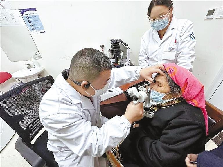 圖為義診專家為眼疾群眾作檢查。 記者 謝筱純 王珊 實習(xí)生 蓋姝博 攝