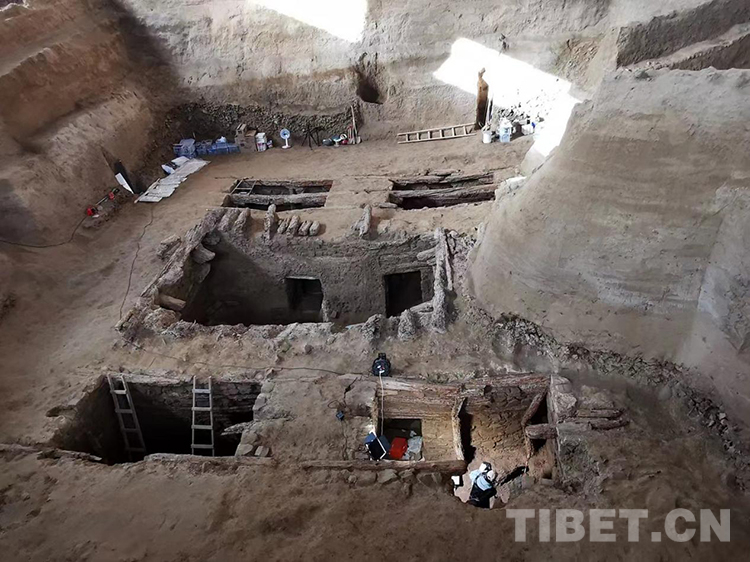 圖為俯瞰西藏當(dāng)雄吐蕃墓地三號(hào)墓