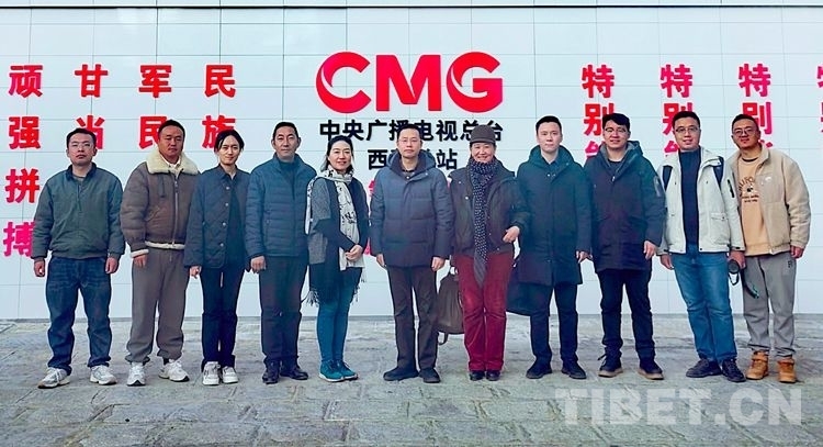 圖為調(diào)研組一行與中央廣播電視總臺(tái)西藏總站相關(guān)負(fù)責(zé)人、工作人員合影留念
