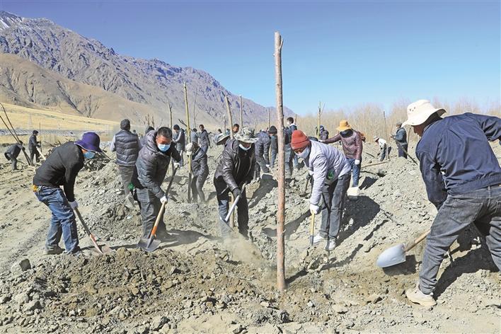 圖為山南市瓊結(jié)縣干部群眾開展植樹造林活動(dòng)。