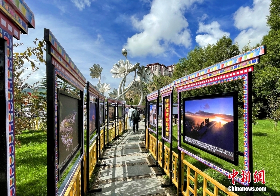 8月26日,參觀者在拉薩市宗角祿康公園欣賞“西藏·70——慶祝西藏和平解放70周年影像展”。該展覽分為“波瀾壯闊的歷史進程”“新時代的輝煌成就”兩部分,編選了時間跨度達70年的200余幅攝影作品,集中展現(xiàn)了西藏70年來社會發(fā)展巨變、輝煌建設(shè)成就和西藏各族人民的幸福安康生活。 中新社記者 冉文娟 攝