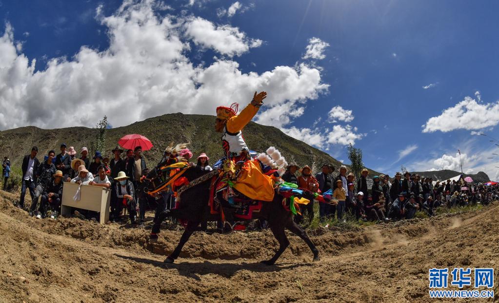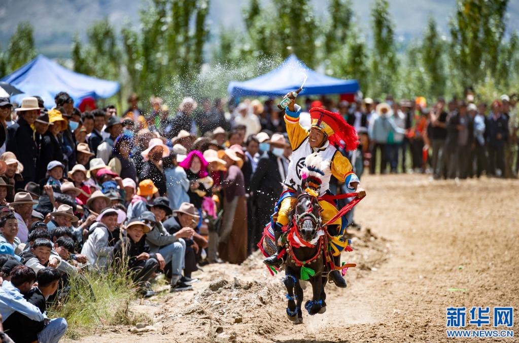 當(dāng)日,位于雅魯藏布江畔山谷里的西藏山南市貢嘎縣昌果鄉(xiāng)崗旦村舉行一年一度的賽馬,迎接即將到來(lái)的收獲季節(jié)。