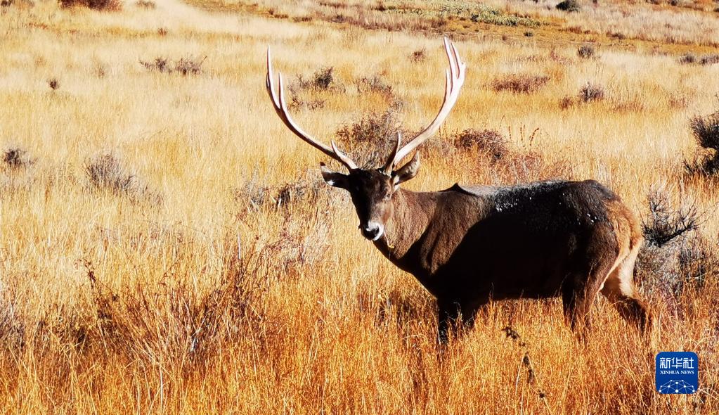 羊卓雍措附近的馬鹿(11月7日,手機拍攝)。新華社記者 沈虹冰 攝