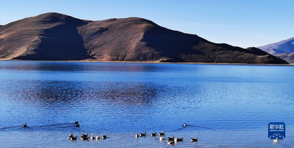 羊卓雍措一景(11月7日,手機拍攝)。新華社記者 沈虹冰 攝