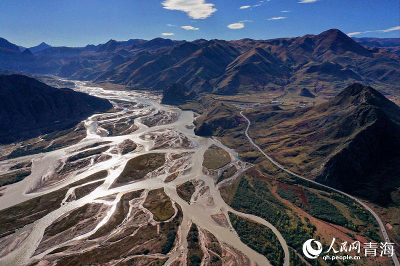 秋冬交接之際,瀾滄江青海流域的主色調(diào)由綠漸黃,極目迥望,山峰綿延不絕、網(wǎng)狀水系相互交織,動靜相宜、氣勢磅礴。