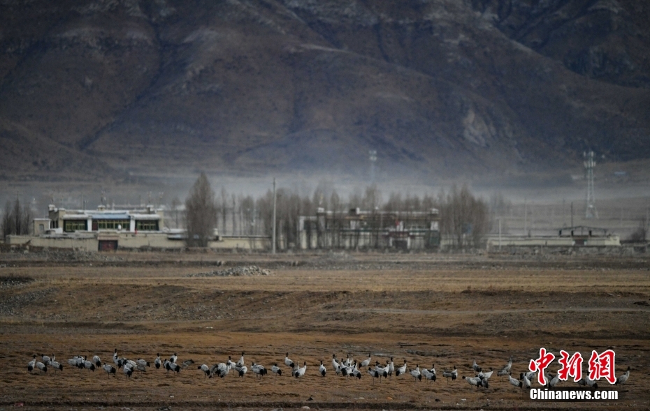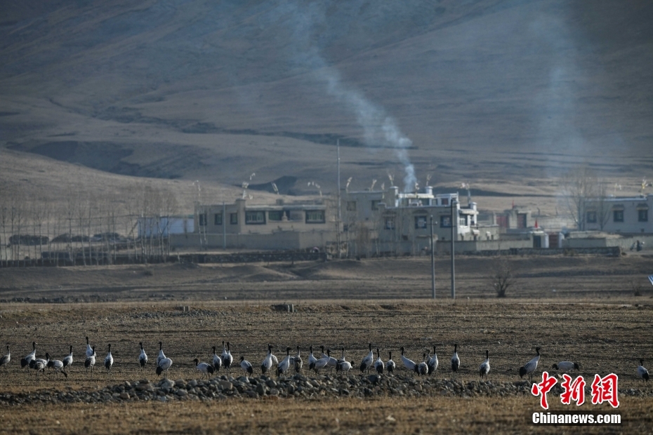 11月23日,西藏自治區(qū)拉薩市林周縣春堆鄉(xiāng),黑頸鶴群正在田野間覓食。由于適宜的環(huán)境和充足的食物,冬季的拉薩市林周縣成了越來(lái)越多黑頸鶴聚集的家園。中新社記者 貢嘎來(lái)松 攝