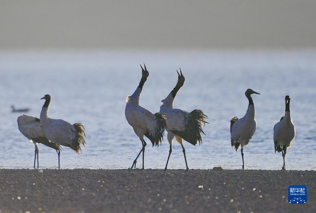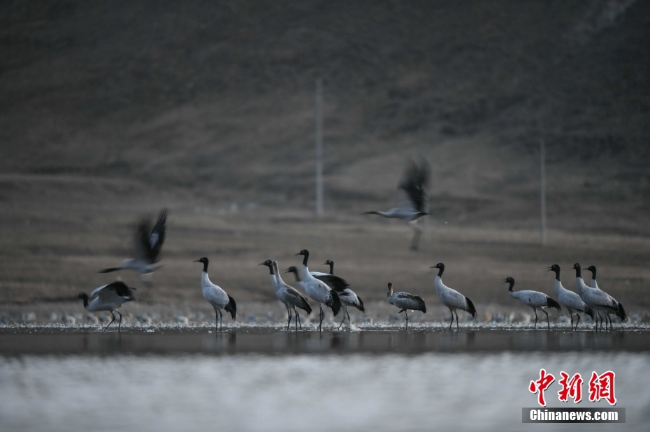 11月23日,在西藏自治區(qū)拉薩市林周縣春堆鄉(xiāng)虎頭山水庫黑頸鶴群覓食。由于適宜的環(huán)境和充足的食物,冬季的拉薩市林周縣成了越來越多黑頸鶴聚集的家園。[詳細(xì)]