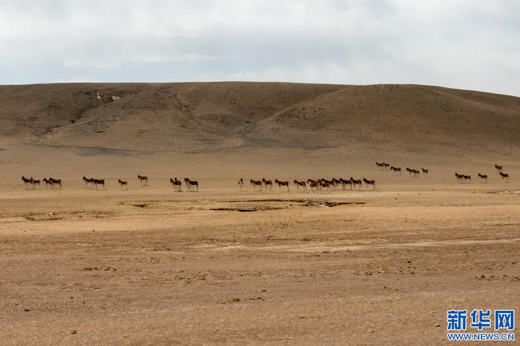 這是在西藏那曲市拍攝的藏野驢(3月24日攝,無人機照片)。新華社記者 周荻瀟 攝