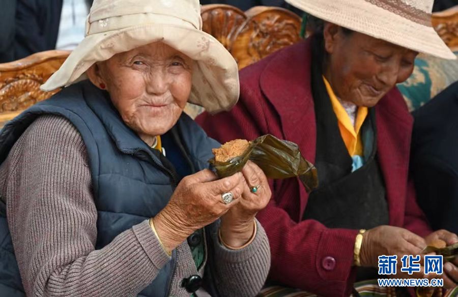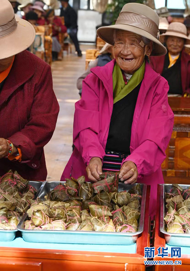 6月3日,西藏山南市集中供養(yǎng)服務中心的老人們開心地領到千里送來的粽子。新華網 王雷 攝