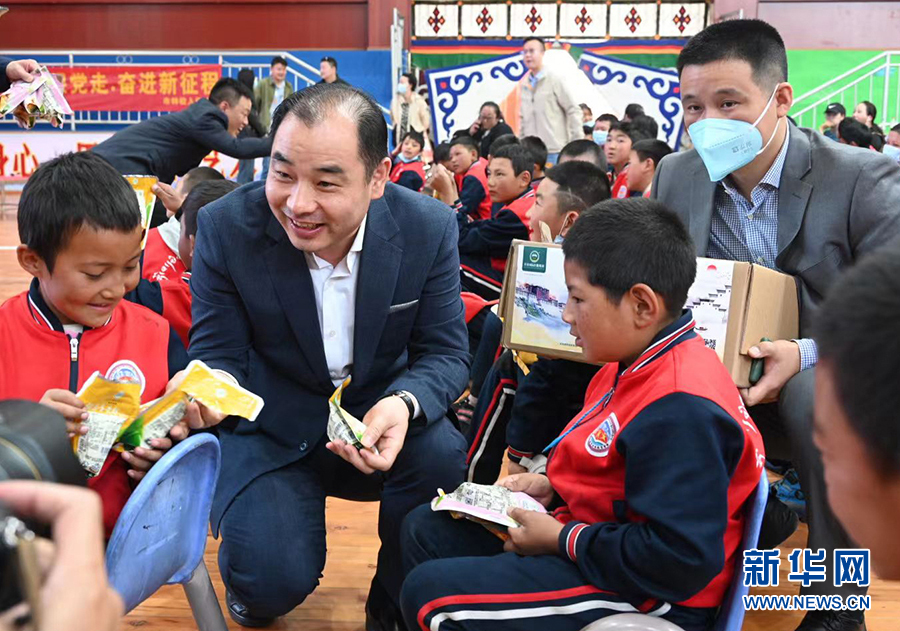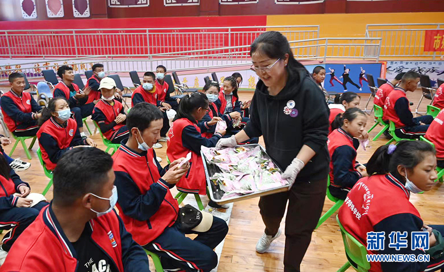 6月3日,在西藏山南市特教學校,安徽岸香集團董事長黃保鎖為孩子們分發(fā)粽子。新華網發(fā)(許國 攝)