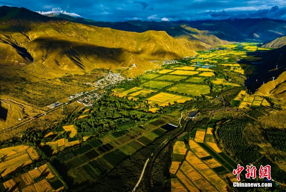 9月29日,西藏自治區(qū)召開中共十八大以來山南市經(jīng)濟社會發(fā)展成就新聞發(fā)布會。山南市委常委、常務(wù)副市長牟永文在發(fā)布會上從綜合實力、基礎(chǔ)設(shè)施、人民生活水平、產(chǎn)業(yè)體系、邊境發(fā)展、生態(tài)文明、改革開放7個方面介紹了10年來山南市經(jīng)濟社會發(fā)展成就。資料圖為山南雅礱河谷的農(nóng)田。(無人機照片) 中新社發(fā) 張巍 攝