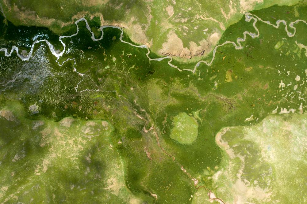 8月11日拍攝的羌塘草原風(fēng)景(無(wú)人機(jī)照片)。新華社發(fā)(旦增努布攝)