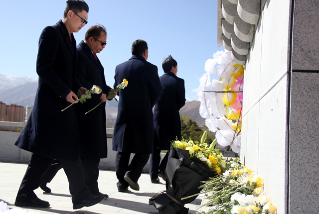 緬懷革命先烈,傳承革命精神?!拔覀儾荒芡洖闋幦∶褡褰夥藕腿嗣裥腋6I身的烈士。他們拋頭顱、灑熱血換來了我們今天的幸福生活,他們是人民心中永恒的豐碑?!痹诂F(xiàn)場的拉薩市公安局張警官說。